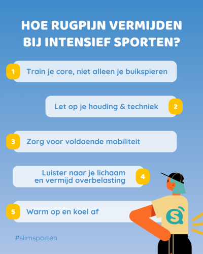 - Slechte warming-up of cooling-down: zonder de juiste voorbereiding of herstel loopt je rug meer risico op blessures