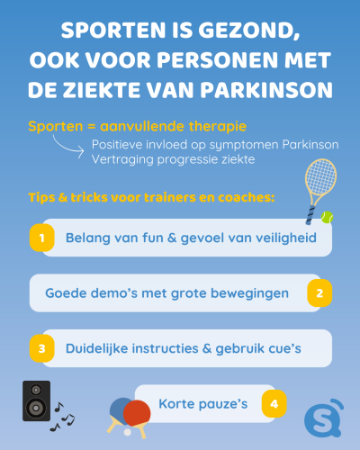 Artsen, kinesitherapeuten en andere zorgverleners zien sport en beweging meer en meer als een 'aanvullende therapie'. Reden te over dus om mensen met de ziekte van Parkinson aan te zetten tot bewegen en sporten.