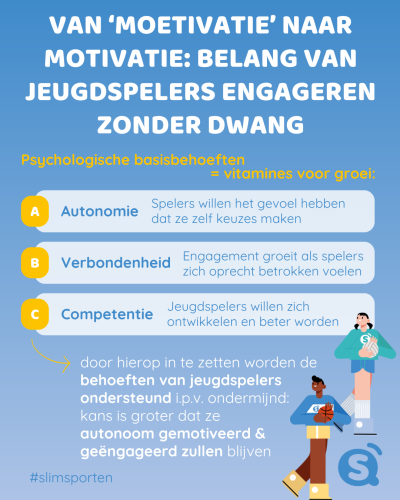 Als deze vervuld worden, voelen spelers zich intrinsiek gemotiveerd, wat hun prestaties en plezier in de sport ten goede komt. Maar als ze worden ondermijnd, kan dat juist leiden tot frustratie of zelfs afhaken.
