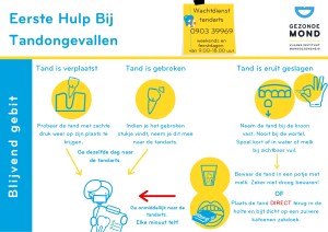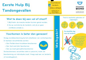 De EHBTO-kaart laat zien wat je moet doen bij een tandongeval. Hang deze kaart op bij je (sport)locatie.